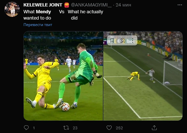 Естественно, в интернете мгновенно появились сотни мемов и шуток. Один из пользователей предположил, что Менди вдохновлялся финтом Куртуа в четвертьфинале ЛЧ против «Челси»: