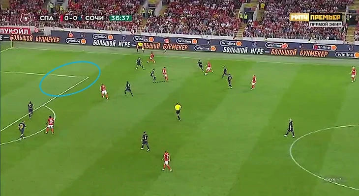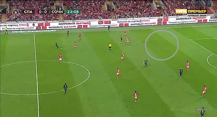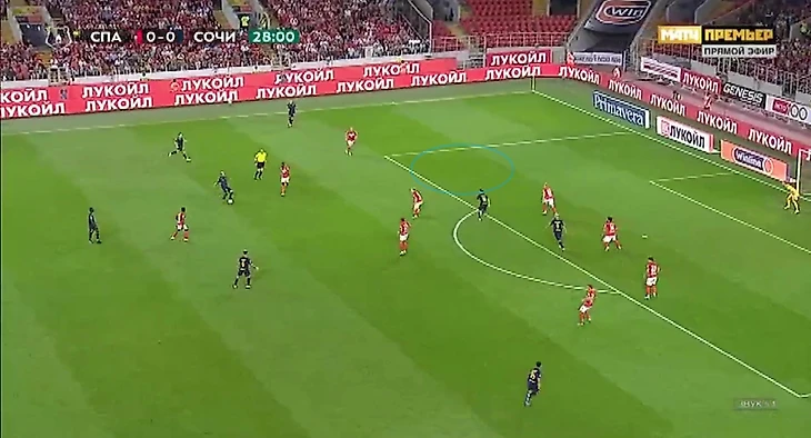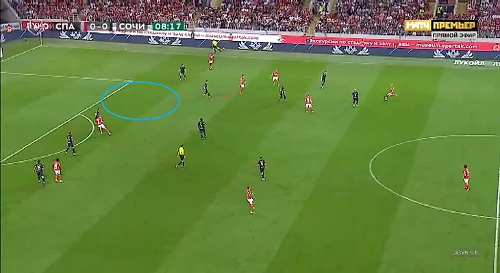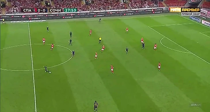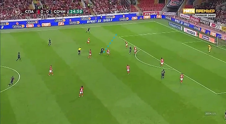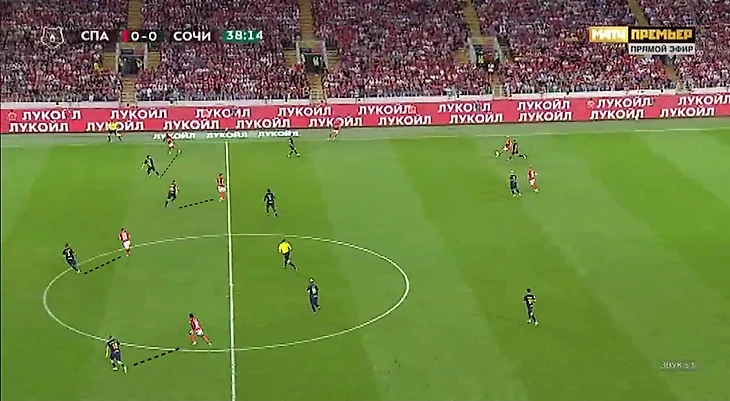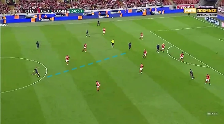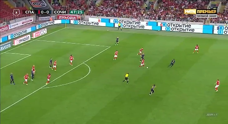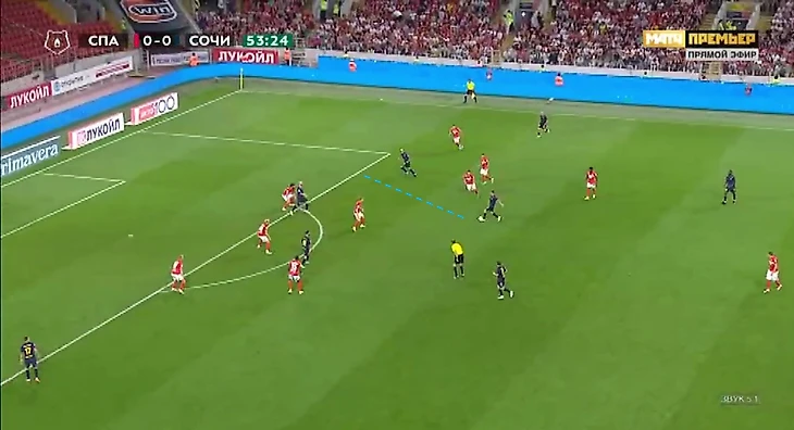 Абаскаль использовал два варианта развития атак. Игнатов заставлял выдёргиваться одного из центральных защитников и старались использовать пустую зону. Это было похоже на атаки «Сочи», но команда Гаранина почти всегда успевала перестраиваться: на противоположном фланге фулбек опускался в одну линию с защитниками, что не позволяло «Спартаку» растягивать последнюю линию.