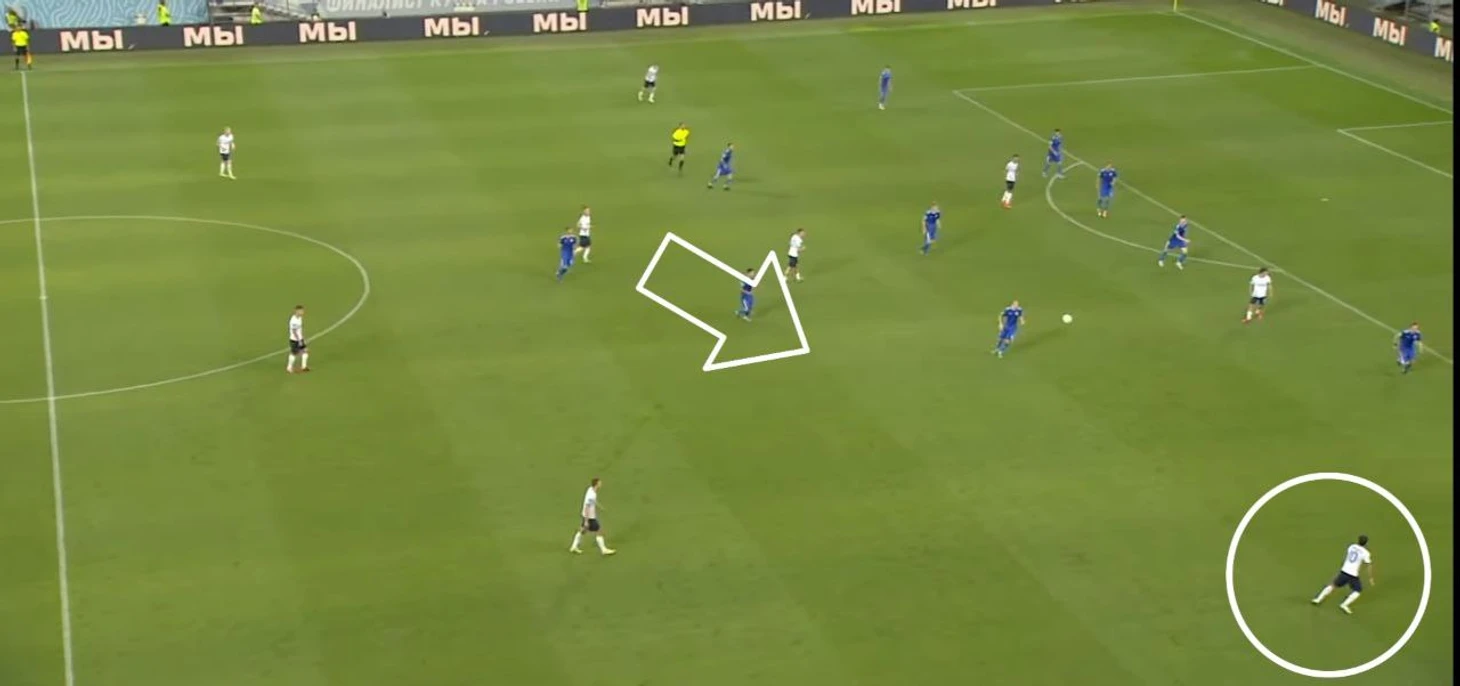 2️⃣.1️⃣ Быстрый переход из обороны в атаку длинной передачей во фланг (если честно, не могу рассмотреть номер, знатоки подскажите). #10 Ахмедханов великолепно выполнил передачу в свободную зону пяткой.
