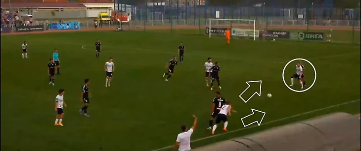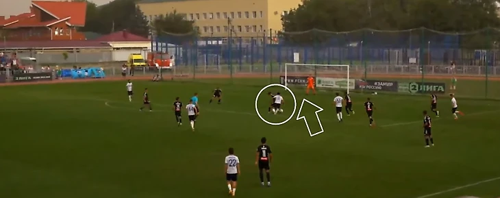 Второй гол Ротора получился вновь геометрически очень красивым. Буквально в один пас. Зато в какой. Диагональ на 50+ метров.