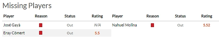 В прошлом туре аргентинец и гол себе привез и красную карточку получил и бан на две игры себе заработал. В общем сделал ккомбо. Кроме буйного латераля Симеоне не повезет в Валенсию приболевшего Стефана Сафича(6,5). Никогда такого не было и вот опять..