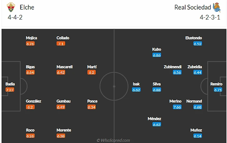 На что обратить внимание: На то, что потери в атакующей линии Сосьедада стали тенденцией. Янузай, Порту, теперь вот Исак.. А Ойарсабаль(8,5) только-только начал бегать.