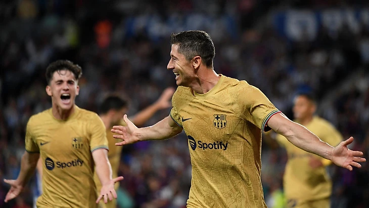 Матч начался крайне интенсивно. «Барселона» перехватила мяч около своей штрафной, после чего Бальде помчался в контратаку через все поле. Высоко поднявшиеся полузащитники хозяев просто не успели откатиться назад, а Зубименди, исполнявший роль чистого опорного в ромбе, не захотел оставлять свою зону. В итоге Бальде не встретил ни намека на сопротивление и без малейшего давления прицельно отдал в штрафную на Левандовски. Тот проявил себя в лучшем качестве: резко отклеился от опекуна, сместился в сторону и, освободившись от опеки, прицельно пробил левой. Именно за такую игру в чужой штрафной Лапорта и заплатил мюнхенцам 45 миллионов евро — такого опытного завершителя в прошлом сезоне команде не хватало.