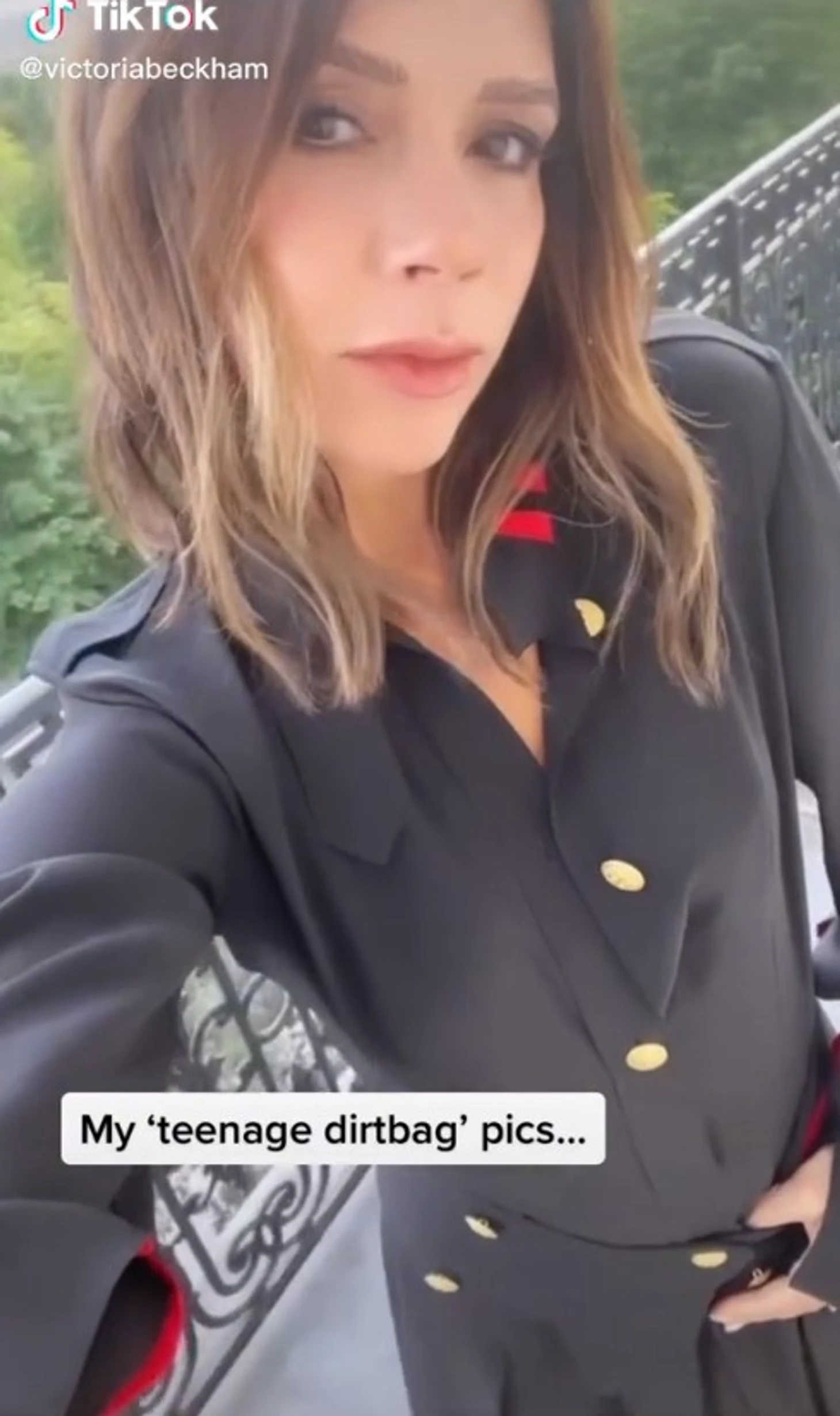 Виктория сделала свой клип, показав снимок, на котором она сейчас одета в шикарный черный блейзер в стиле милитари.
