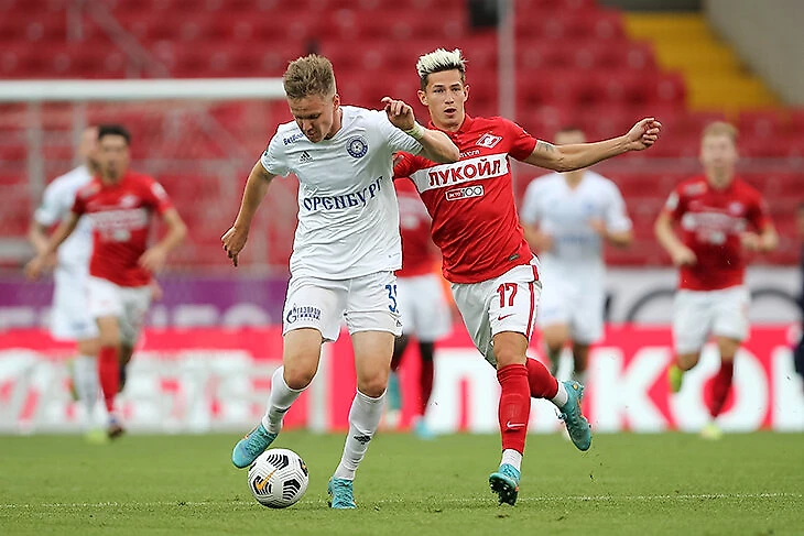 3. «Оренбург» забил «Спартаку» после странной ошибки Мартинса, но переход на чужую половину начался с перехвата, игры Капленко 1-в-1 и последующего подбора.