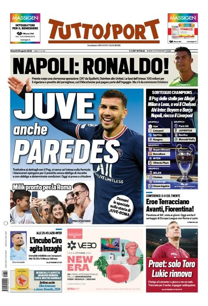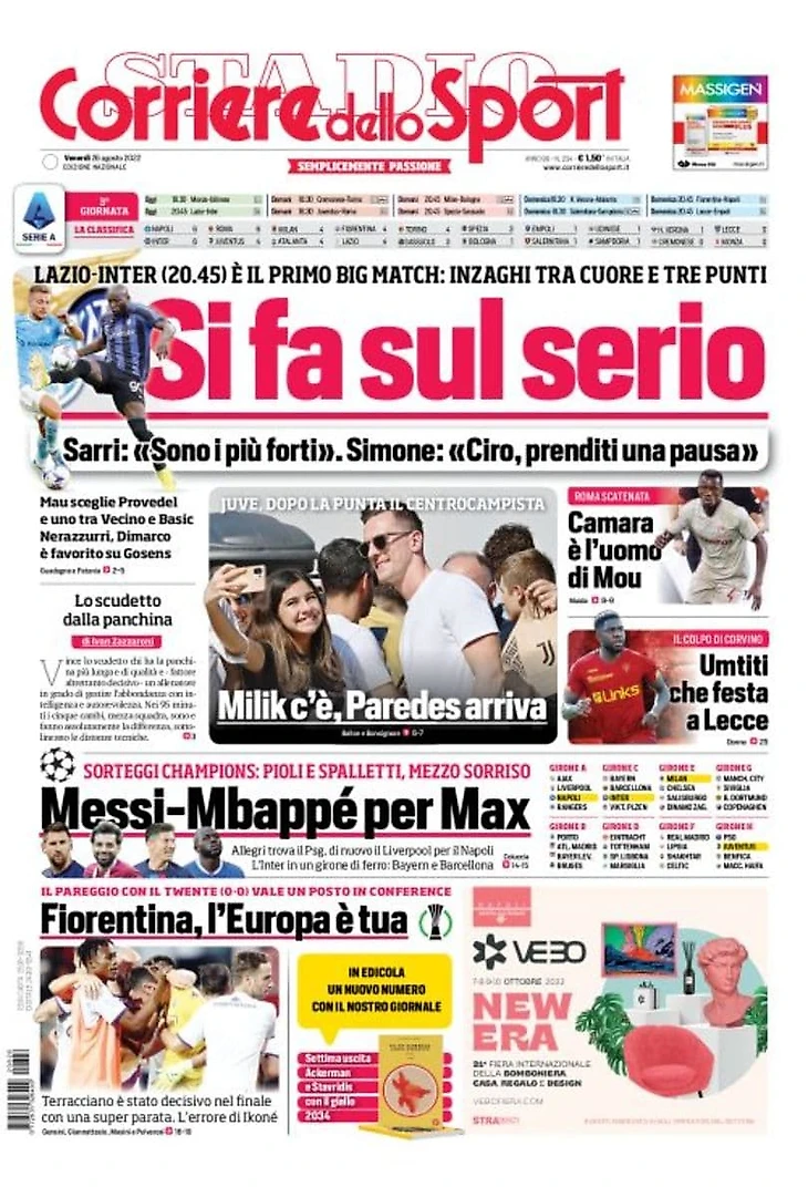 Лига Чемпионов для нас 4. Заголовки Gazzetta, TuttoSport и Corriere за 26 августа