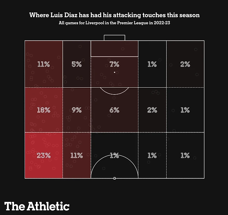 Чаще всего позиция Фирмино оставляла Мохамеда Салаха и Диаса одних в нападении. Отчасти именно поэтому Диас, похоже, в этом сезоне опускался намного глубже, чтобы забрать мяч.