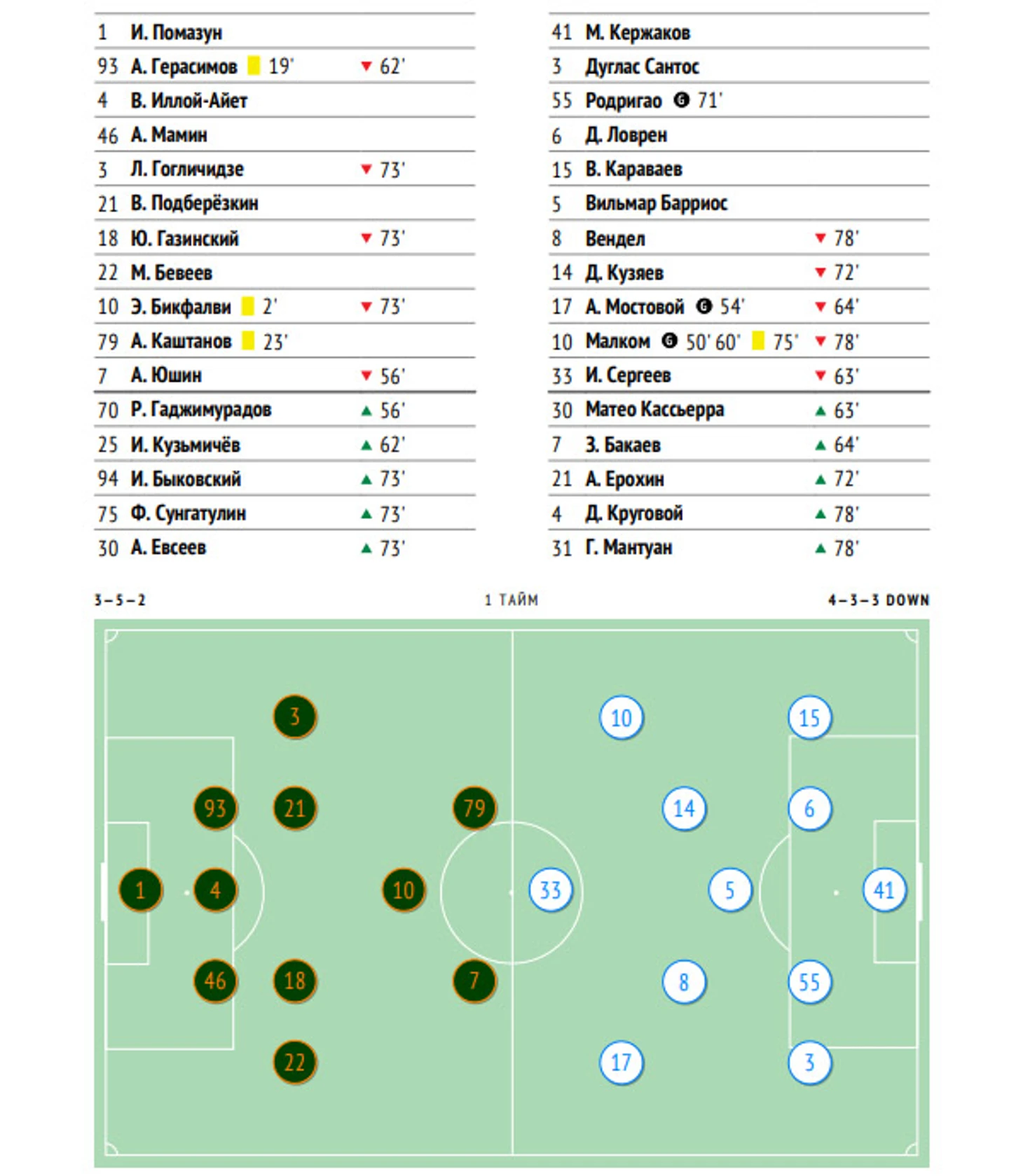 Уральцы оказались в глубоком нокауте и не смогли прийти в себя. А вот игроки «Зенита» поймали кураж и чуть позже забили ещё раз. Окончательный результат установил Родриго, открывший счёт своим голам за клуб с берегов Невы.