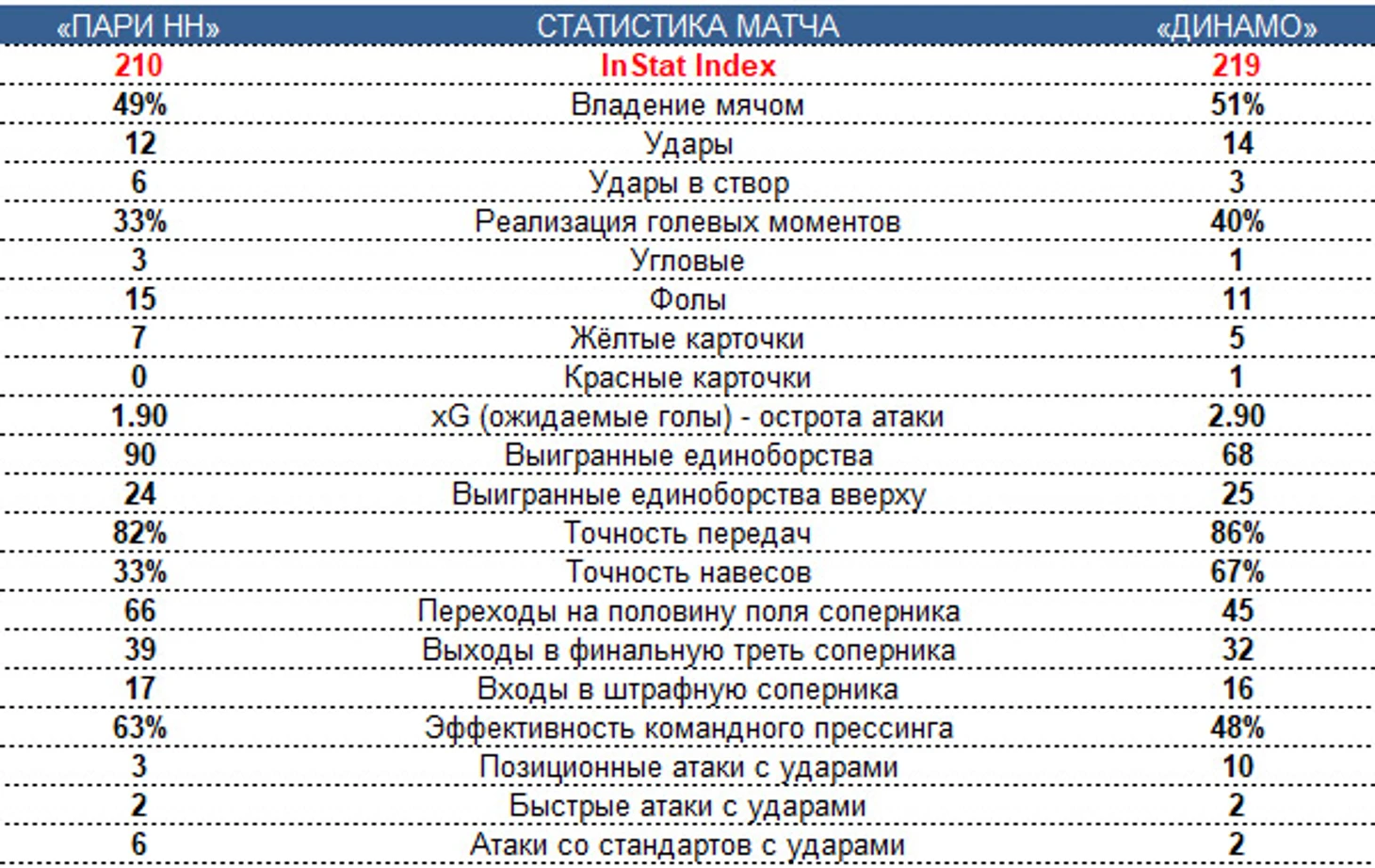 Численное преимущество коллектив Михаила Галактионова быстро реализовал усилиями Стоцкого, которому ассистировал совершивший проход по левому краю Жоау Милсон. Более того, в концовке встречи хозяева вполне могли вырвать победу, но не использовали два отличных момента. У динамовцев, в свою очередь, уже в добавленное время также была возможность забрать три очка, однако Лесовой не попал в ворота.