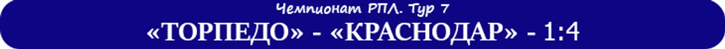 ⏱ «Торпедо» Москва - «Краснодар» Краснодар – 1:4 (0:2) 28.08.2022 (воскресенье). Начало – 17:30. Химки. Стадион «Арена Химки». 2500 зрителей. Голы: 0:1 Сперцян (31), 0:2 Сперцян (44), 0:3 Кордоба (54), 1:3 Кривцов (59 в свои ворота), 1:4 Ахметов (90+1).