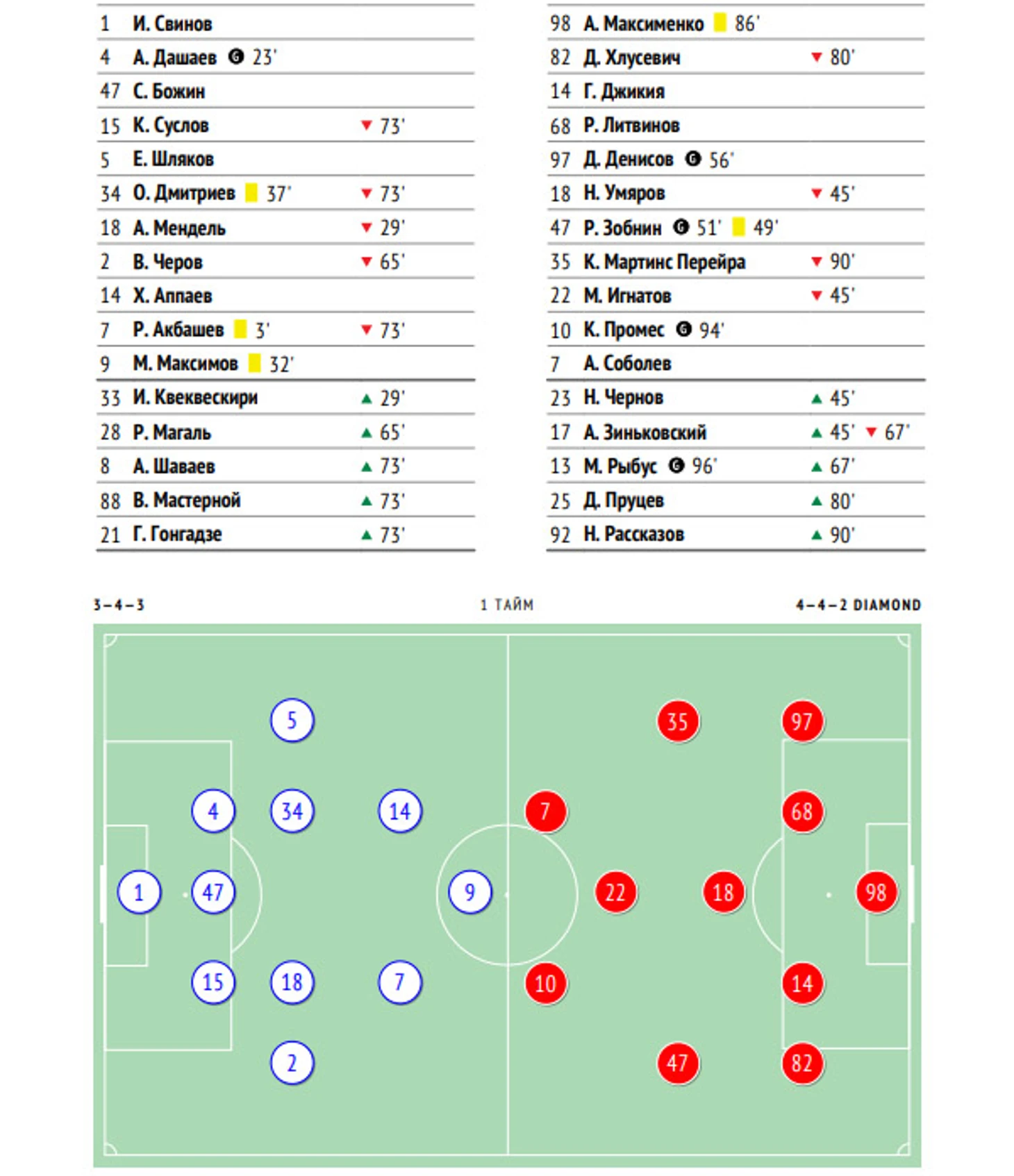 До перерыва вернуть прежнюю атакующую активность спартаковцы не смогли. Зато вторую половину встречи команда Гильермо Абаскаля провела мощно и добилась нужного результата. Она не только быстро восстановила равновесие усилиями Зобнина, но и вышла вперёд благодаря результативному удару Денисова.