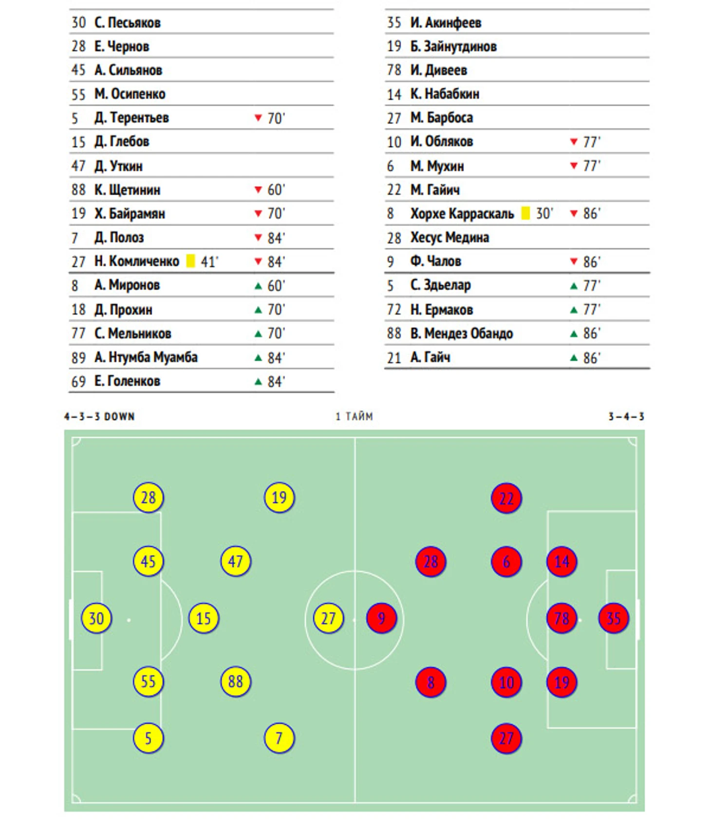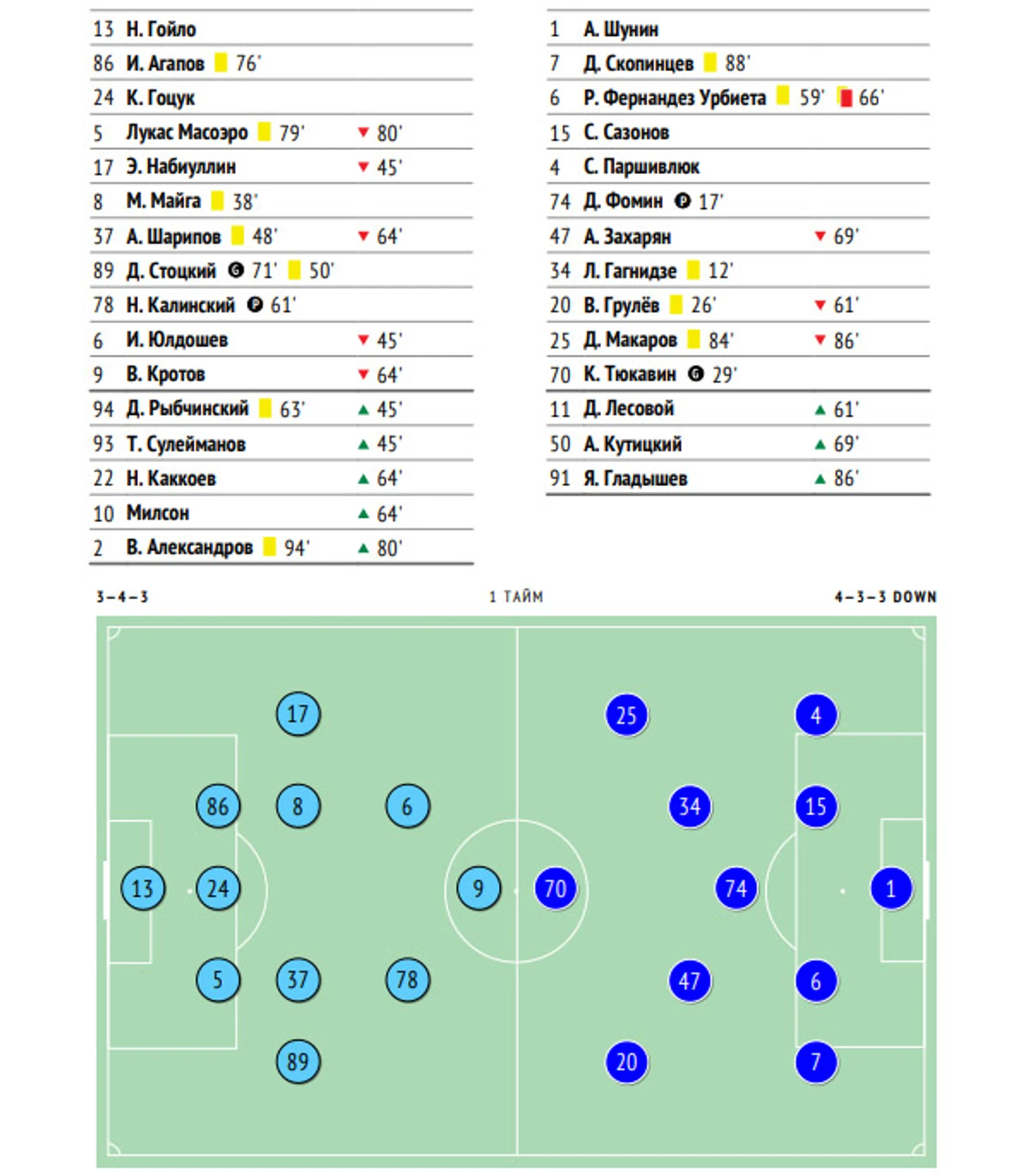 Дубль оформил Малком. Сначала Вендел сыграл в штрафную на Кузяева, тот пробил в дальний угол, Помазун отвел мяч точно на Малкома, который с добивания поразил пустые ворота. Затем екатеринбуржцы только наблюдали за пасом на Малкома к чужой штрафной. Защитник Герасимов, похоже, в этом эпизоде дернул мышцу, так что Малком вышел на рандеву с Помазуном без сопротивления и пробил в дальний угол. А между голами бразильца втиснулся результативный удар Мостового. Вендел получил мяч перед чужой штрафной, ушел от защитника и прямо перед Помазуном отдал пас на Мостового, которому оставалось не промахнуться по пустым воротам. 3:0 в пользу гостей.