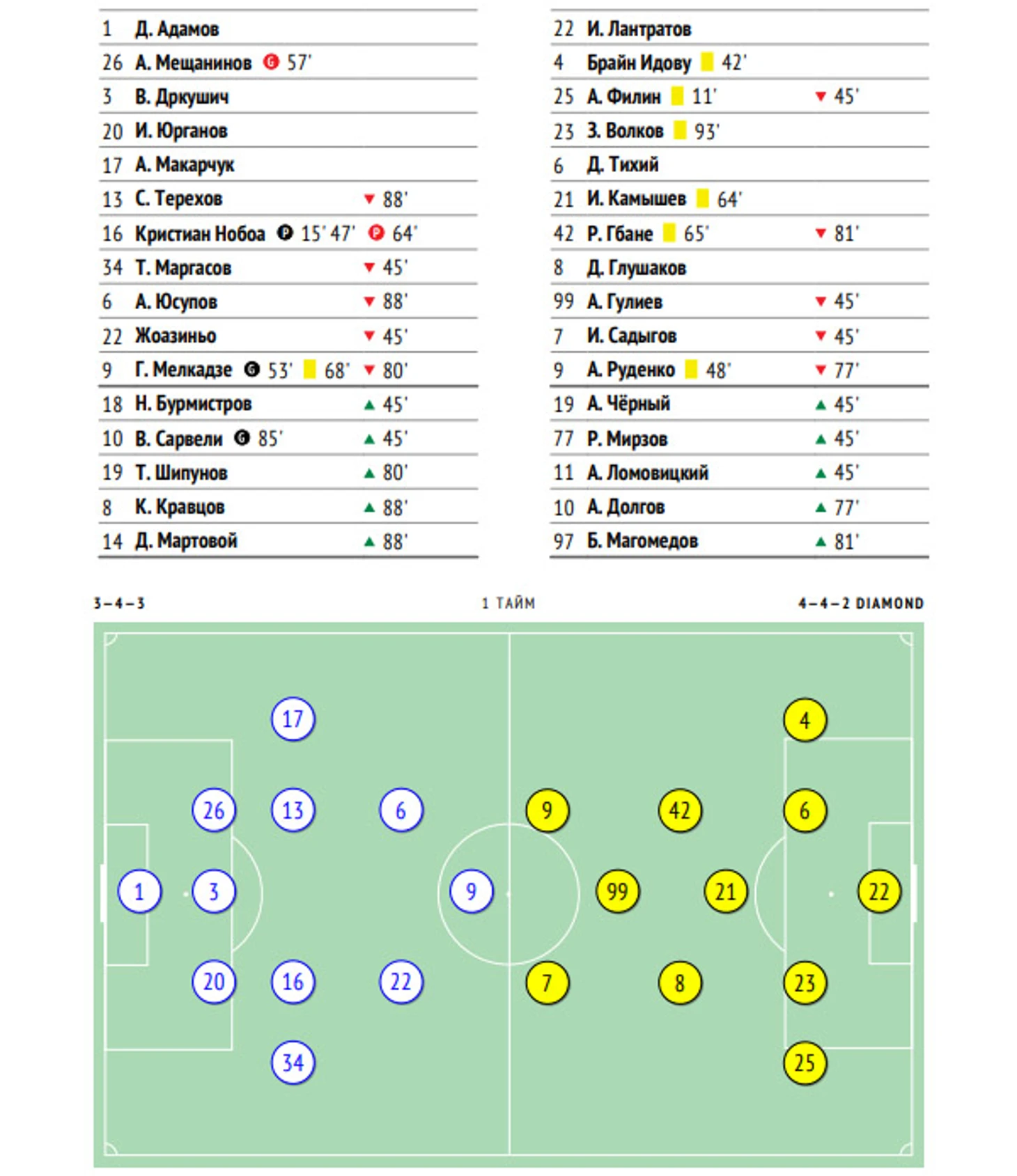 В Сочи у «Химок» было всё отвратительно сзади. Уже в дебюте мог забить Нобоа, но спас Лантратов, а дальше Маргасов заработал для эквадорца пенальти, который тот уверенно реализовал. Хозяева и дальше были лучше, но «Химкам» долго везло – Маргасов из убойной позиции промазал, а затем попал из чуть менее выгодной в штангу.