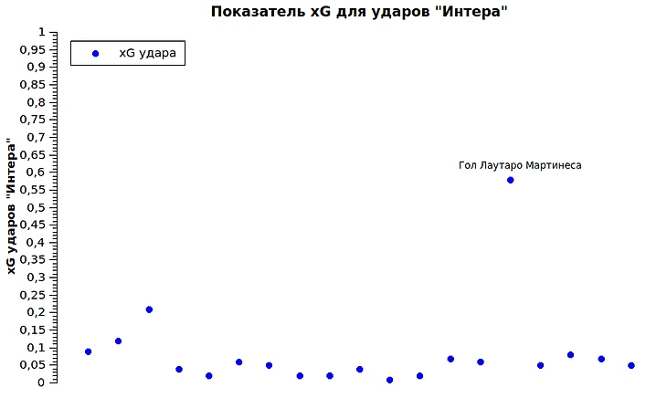 С другой стороны, «Интер», как по мне, провел очень скудный матч с точки зрения атаки. Да, 19 ударов по воротам выглядят внушительно, однако, на самом деле, за игру у гостей можно вспомнить всего пару моментов, после которых хотелось сказать: «Вот здесь надо было забивать». Кроме непосредственно гола Лаутаро Мартинеса на ум приходит разве что удар Думфриса, с которым блестяще справился Проведель. Однако, в целом, «Интер» создал много мини-моментов, а их количество не перешло в качество. Большинство ударов гостей имели довольно низкий xG.