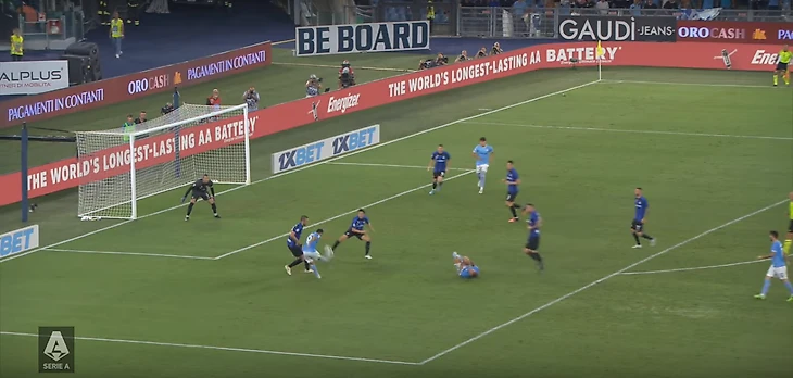 Команде Маурицио Сарри удалось конвертировать игровое преимущество в забитый гол: Фелипе Андерсон убежал от Димарко и пробил без шансов для Самира Хандановича. В момент паса Милинковича-Савича Андерсон не попал в кадр, однако по другим повторам можно увидеть, что защитники «Интера» совсем не контролировали бразильца: Димарко не успел занять должную позицию, возвращаясь из атаки, а Бастони находился в центре. Как итог, оба оказались не у дел.