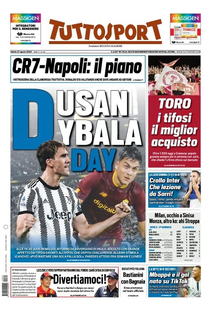 В 18:30 (СЕТ) «Юве»-«Рома» с возвращением Пауло в качестве соперника. Сбор с тёплыми чувствами от болельщиков перед отелем, где гостят Джаллоросси. Аллегри стимулирует Влаховича: «Ему хватит одной передачи на гол». Паредес ожидается завтра или послезавтра.