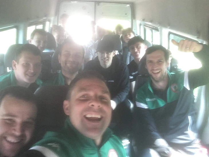 Радостные лица футболистов, вероятно, подсказывают о недавно добытой победе.