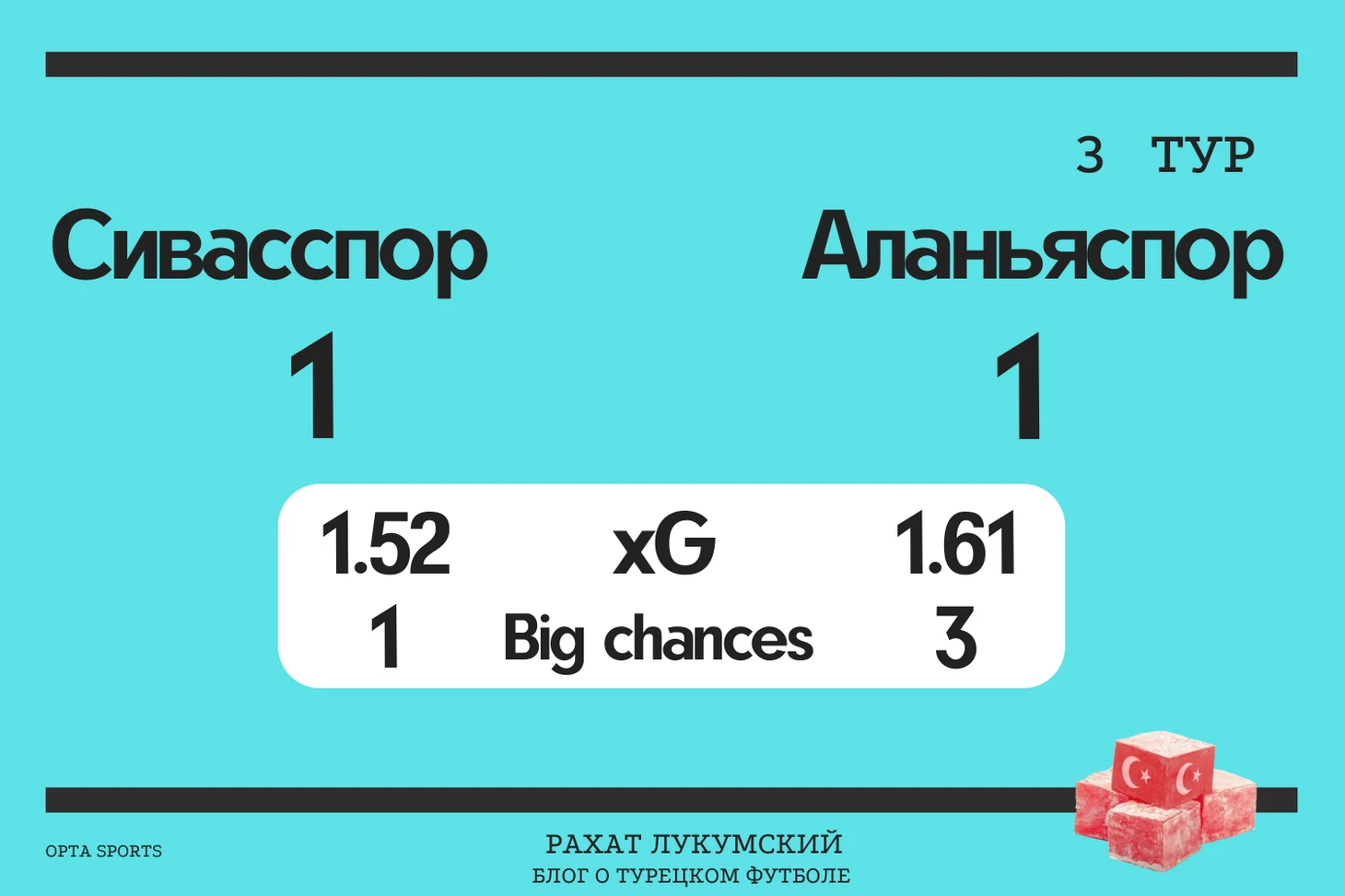 На бумаге для меня явным фаворитом выглядела “Аланья”. На фоне крайне слабого в первых двух турах “Сивасспора” команда Фариоли казалась просто футбольной машиной. Но, судя по всему, мои ожидания напоролись на суровую реальность в виде регрессии к среднему.