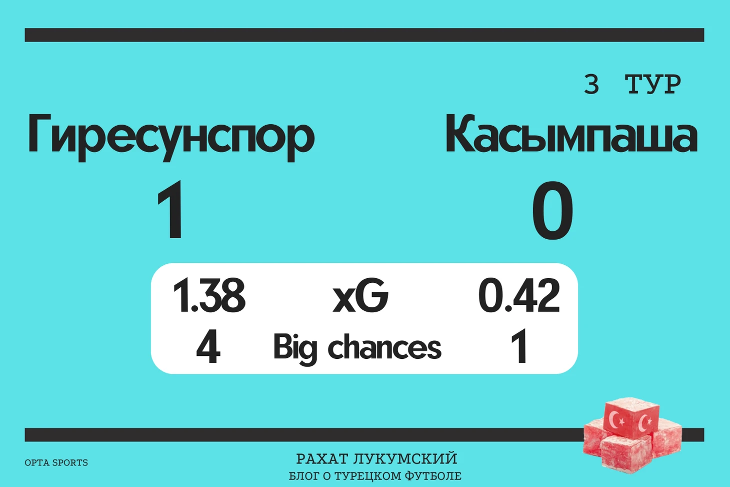 Несмотря на большой перевес “Хатая” по xG, мне кажется, что наиболее справедливым итогом в этом матче была бы именно ничья, а не победа хозяев. Во-первых “Газиантеп” заслужил возможность играть по счету, а во-вторых многие их контратаки просто не доходили до удара, не добавив команде ожидаемых голов.