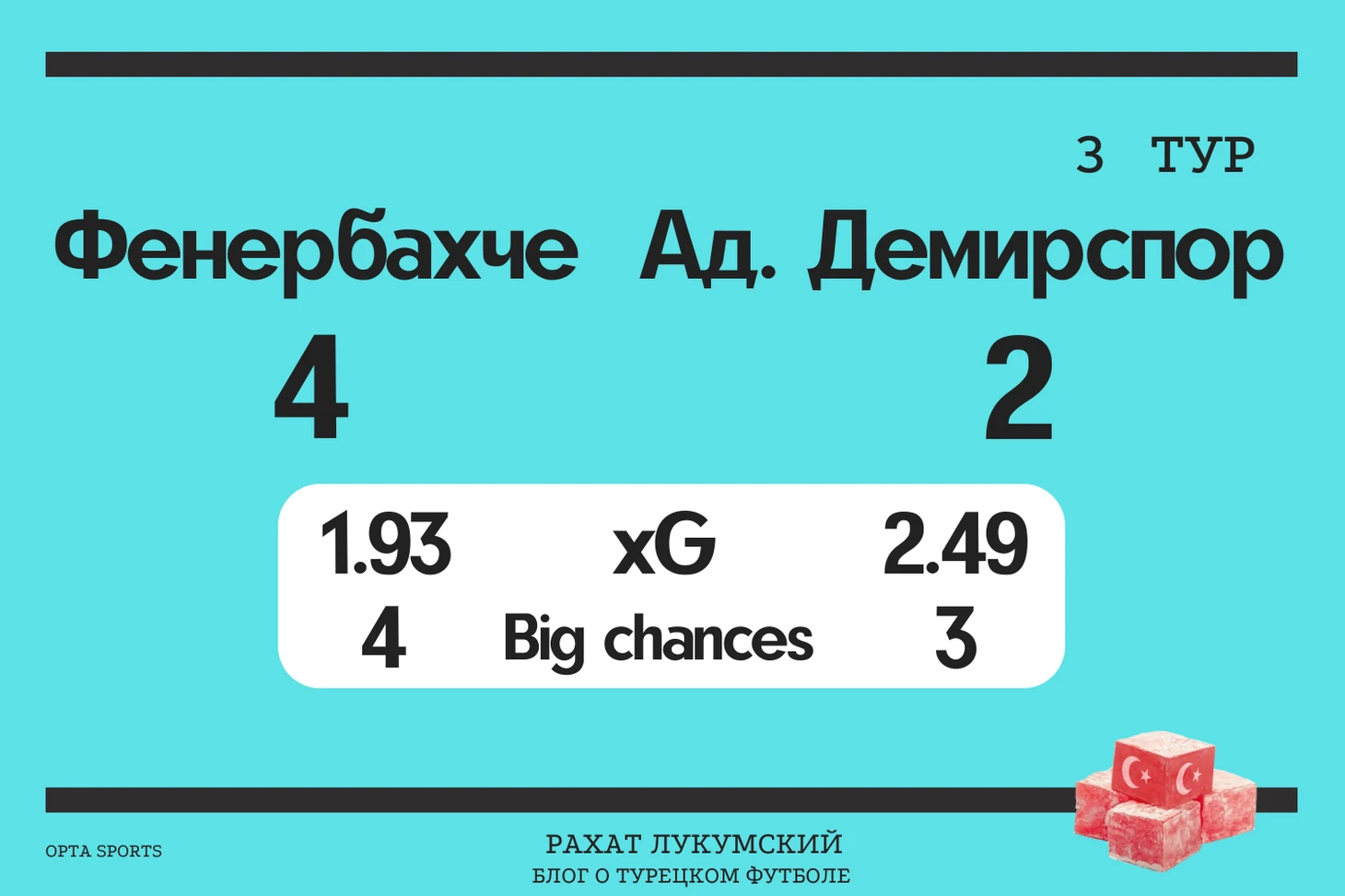 “Касымпаша” после разгромного поражения от “Фенербахче” сменила тренера. Да, старт у команды не задался не только по результату, но и по игре. Однако, увольнение тренера после второго тура за разгромы от больших команд — вряд ли признак хорошего менеджмента. Но погружение в тему наводит на мысль, что поражения от грандов скорее всего были лишь поводом, а не причиной увольнения. “Касымпаша”, судя по всему, освободила место специально для своего экс-тренера Шенола Джана. История там интересная, возможно, даже потянет на небольшую статью — постараюсь разобраться получше.