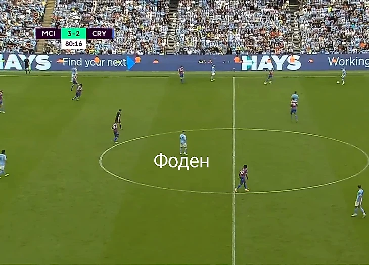 Кристал Пэлас: 2-ші таймда прессингтен мүлде бас тартты десек болады. PPDA (Opta) статистикасы бойынша, Манчестер Сити Кристал Пэластың қысымынан шығу үшін 33,2 пас берілуі қажет, яғни прессинг кезінде мүлде допты тартып ала алмады деп айтсақ болады.