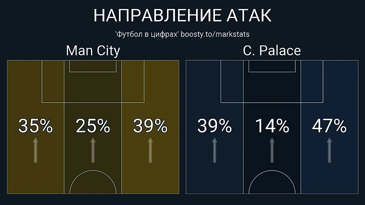 Кристал Пэлас және Манчестер Сити командаларының шабуыл жасау аймақтары: