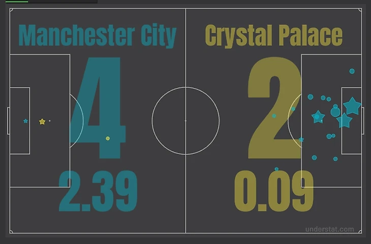 Матчтың xG статистикасына қарайтын болсақ, Кристал Пэлас тіпті 1 ГОЛғада ойнамағанын түсінуге болады