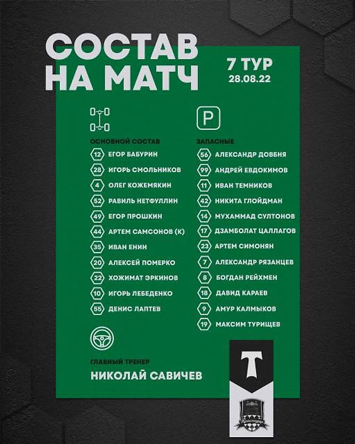 Уже знакомая схема 5-2-2-1 и более-менее понятный автобусный план на игру с Лаптевым в роли нападающего, который в физической борьбе должен измотать защитников и во втором тайме уступить место свежим Караеву и Турищеву.