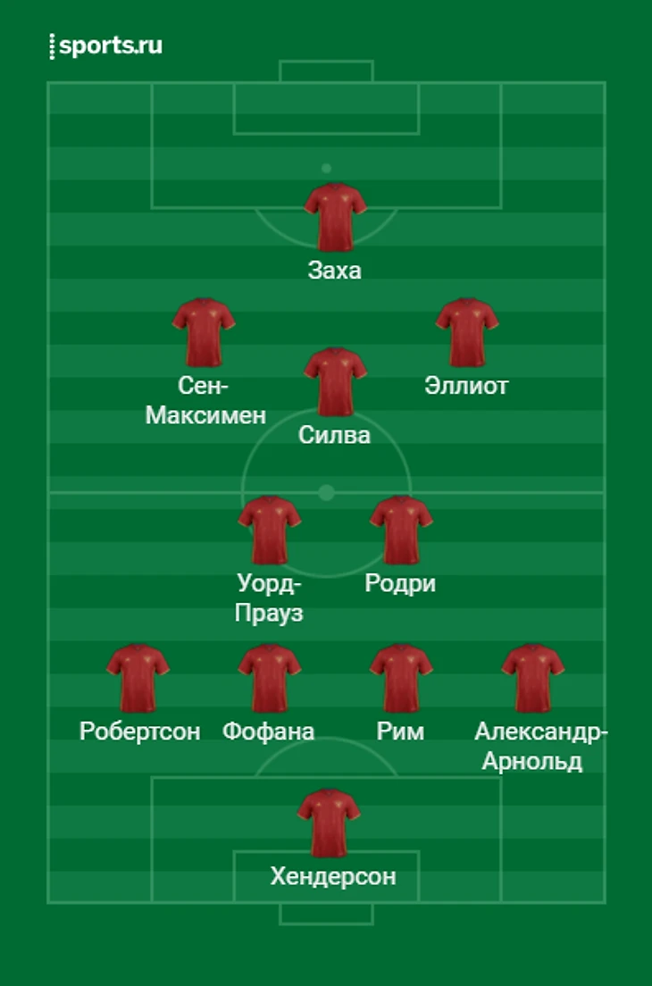 По флангам атаки - Харви Эллиот справа и Аллан Сен-Максимен слева (6,4 и 5,79 SCA соответственно).