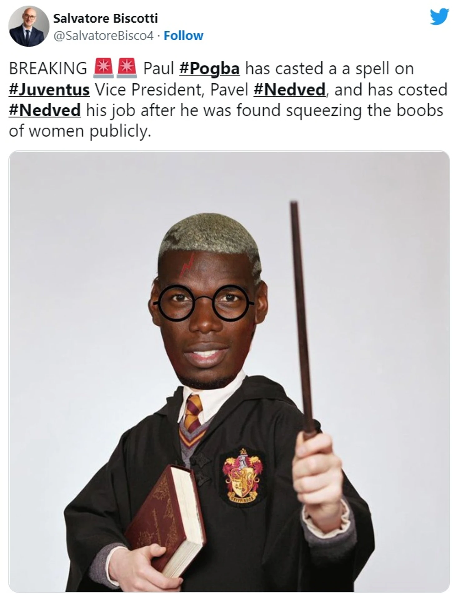 «Срочные новости! Поль Погба наложил заклятие на вице-президента «Ювентуса» Павла Недведа и лишил его работы после того, как его уличили в публичном тискании женщин»
