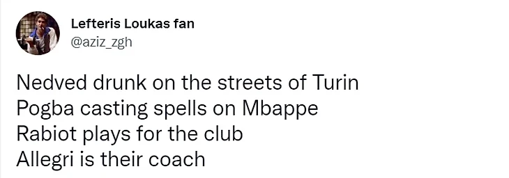 «Недвед ходит пьяным по Турину. Погба пытается проклясть Мбаппе. Рабьо играет за клуб. Аллегри – их тренер».
