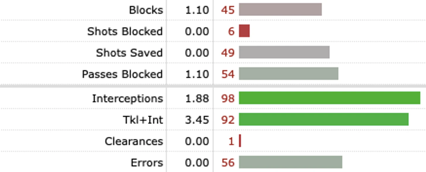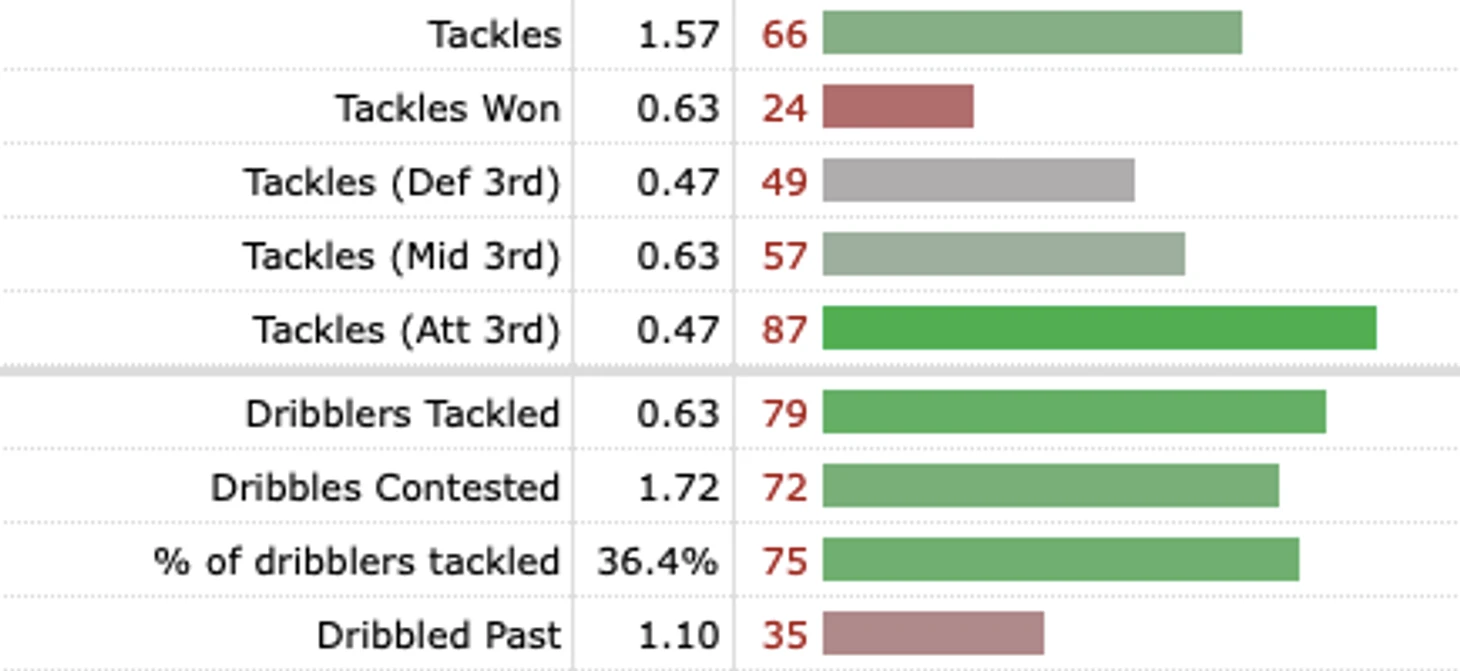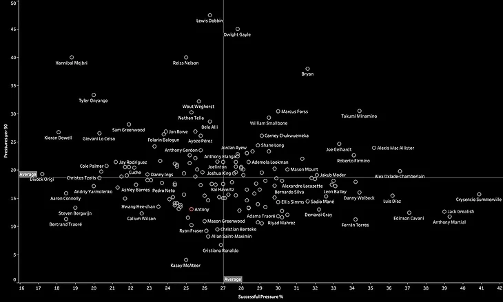 Энтони не очень силен в прессинге, его рейтинг ниже среднего как по прессинг действиям, так и по проценту успешного прессинга. Инвертированная позиция бразильца иногда может оставлять свободное пространство для проходов соперника, поэтому его должен страховать товарищ по команде.