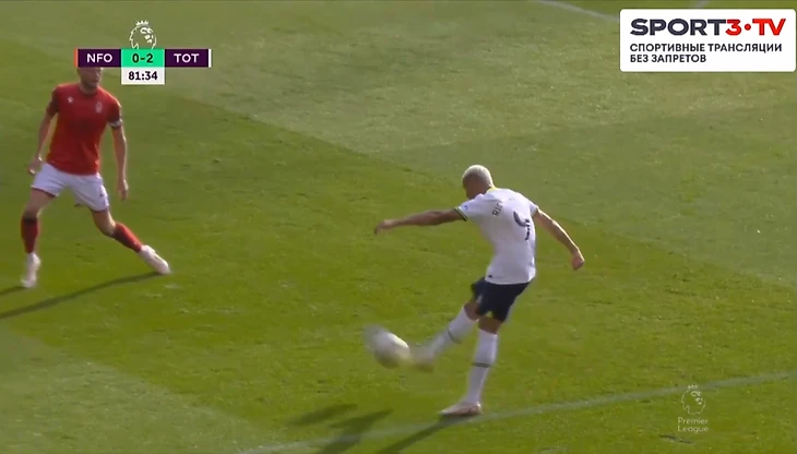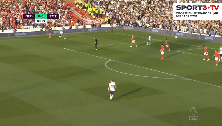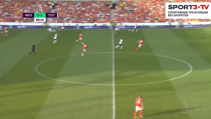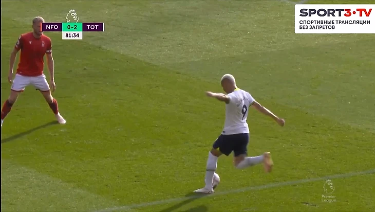 На 73 минуте Конте поменял Сона и Перишича на Ришарлисона и Сессеньона. Затем Тоттенхэм пошёл в контратаку. Хьёберг отдал великолепную передачу на ход Сессеньону. Райан прошёл в штрафную и попробовал прострелить на Кейна, но защитник Ноттингема в подкате заблокировал эту передачу. Мяч отскочил к Ришарлисону, который навесил внешней стороной стопы на Харри. Англичанин забил головой и оформил дубль.