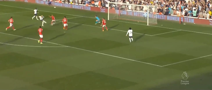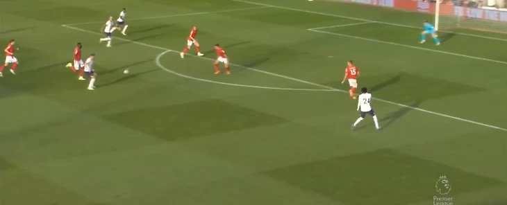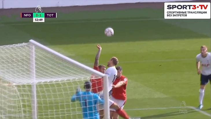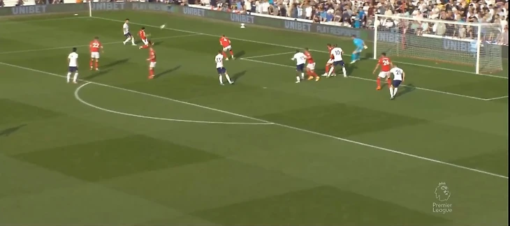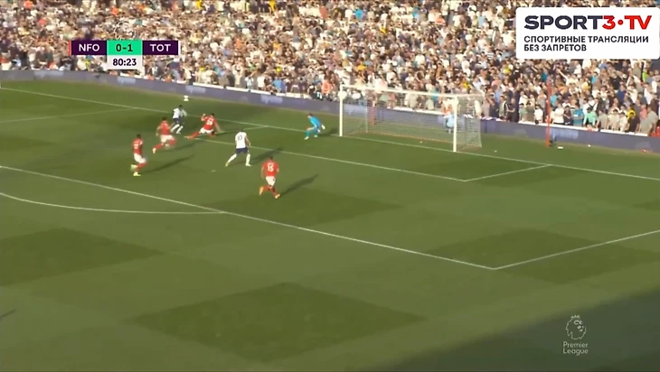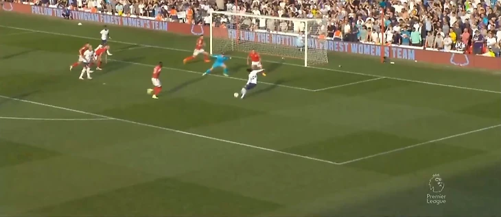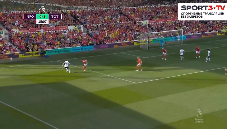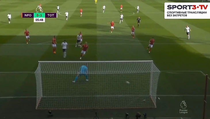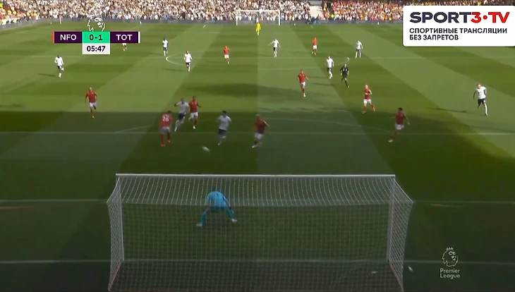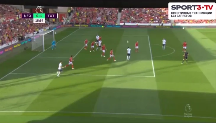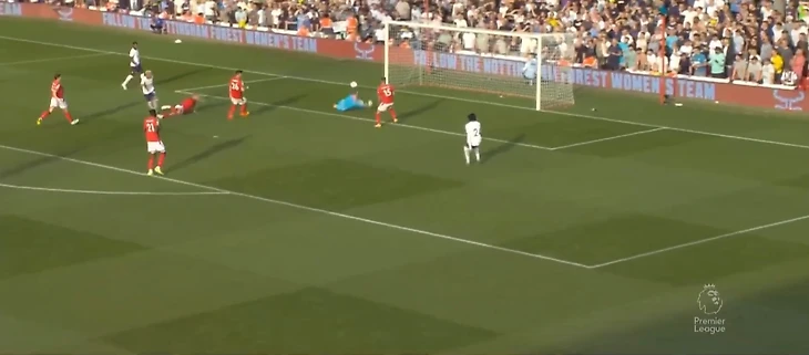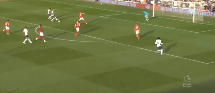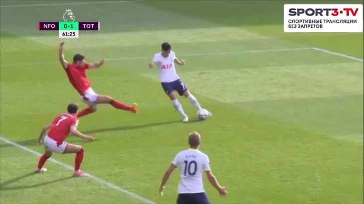 На 60 минуте Кулусевски отдал передачу в зону на Сона, кореец прострелил на Кейна, мяч отскочил обратно к 7 номеру Тоттенхэма, который пробил прямо во вратаря Ноттингема.