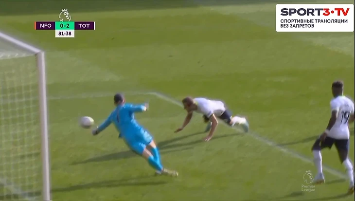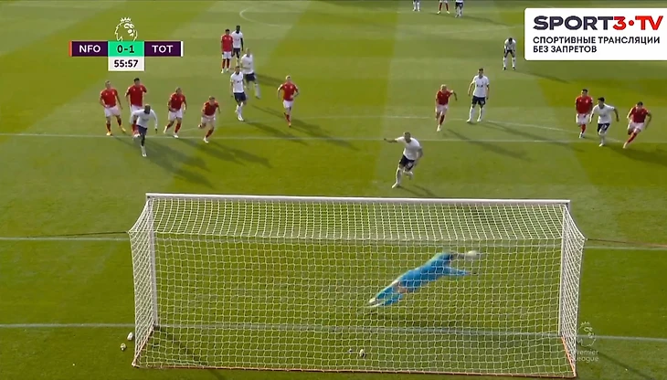 Посмотрев ВАР, арбитр встречи принял правильное решение: выписал жёлтую волейболисту из Ноттингема и поставил пенальти. К сожалению, Кейн не смог реализовать пенальти. Хендерсон угадал направление удара по замаху Харри и прыгнул в правый угол.