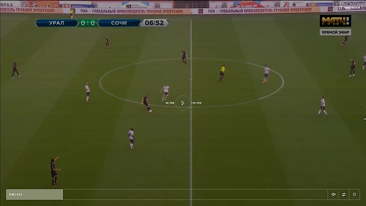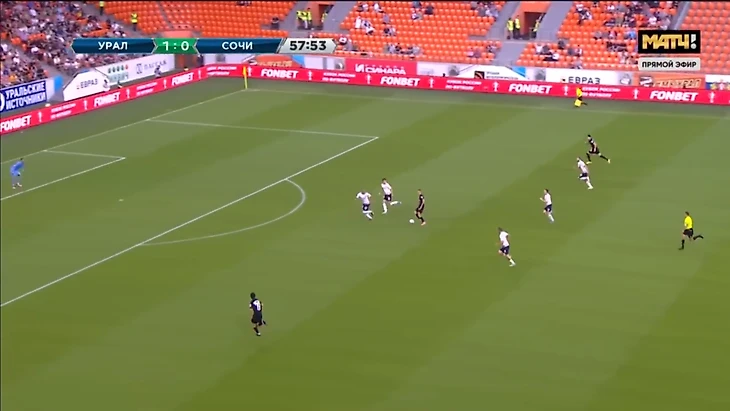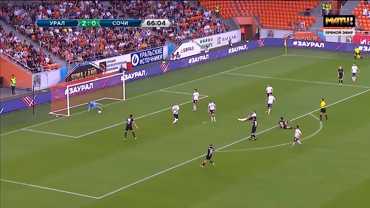50" Гаджимурадов после ошибки Бурмистрова убежал от Миладиновича и прошил Джанаева. ВАР определяет офсайд в начальной стадии эпизода, еще в центре поля. Гол отменен.