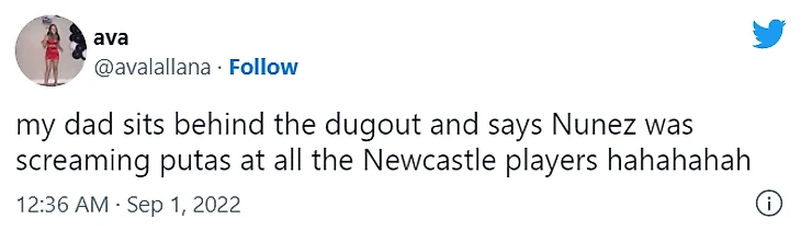 Об этом рассказала болельщица «Ливерпуля» под ником avalallana: «Мой папа сидел за скамейкой и слышал, как Нуньес кричал в сторону игроков «Ньюкасла» «пута»