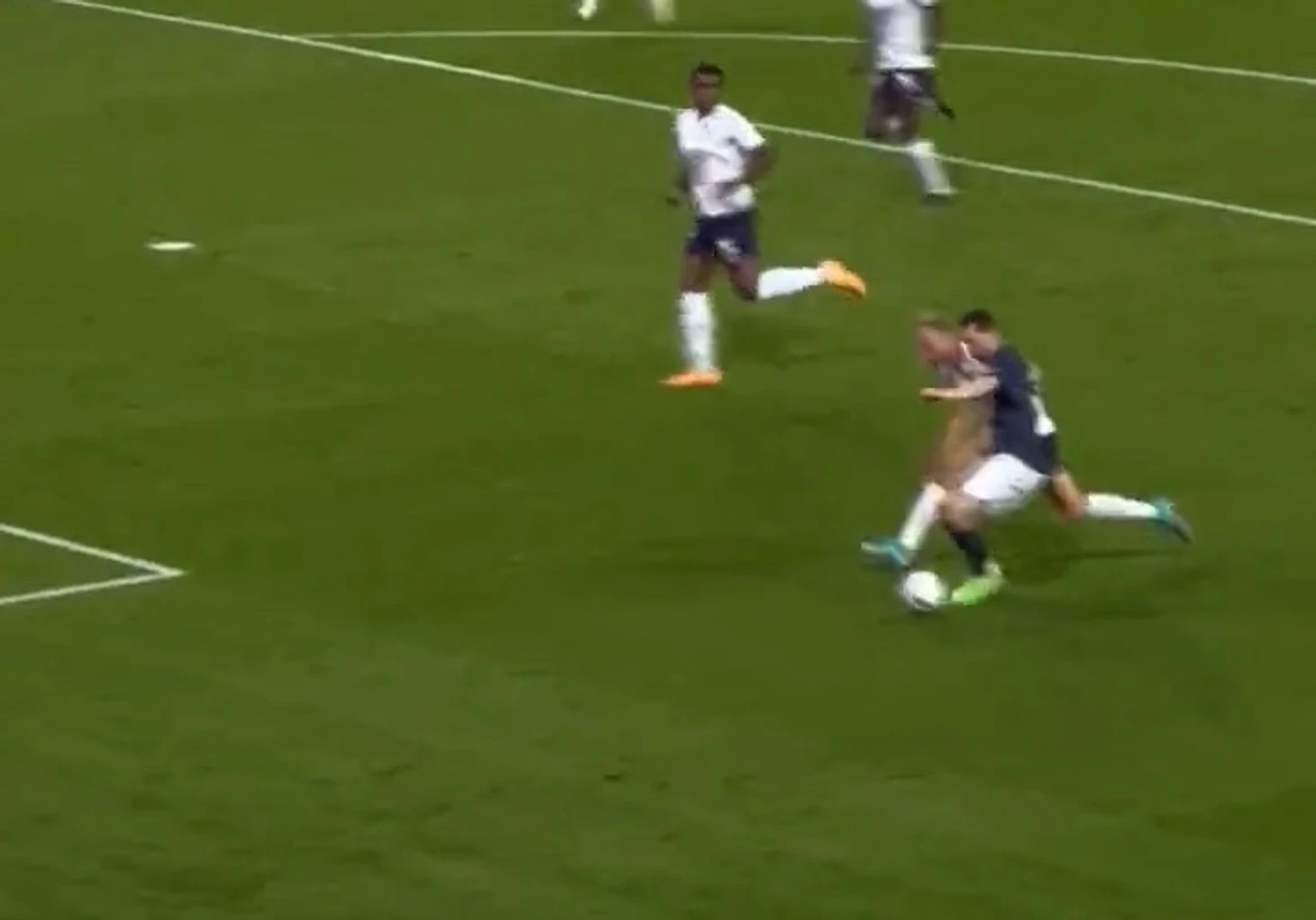 ... а потом ложным замахом просто отправил его на газон.