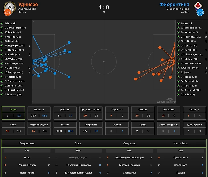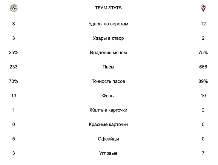 Удинезе прекрасно воспользовался своим моментом и после перехвата реализовал голевую комбинацию с убийственным расчетом уже на 17 минуте, а потом просто не позволял выходить за пределы центрального круга.