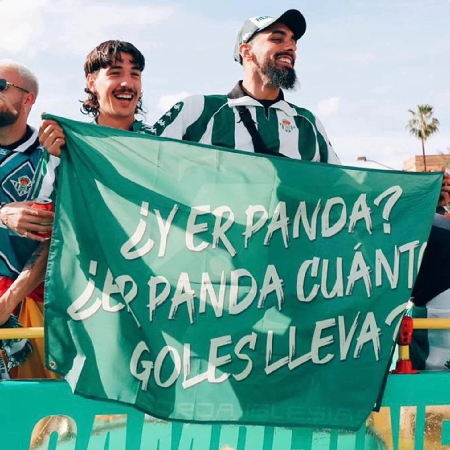 После финала «Бетис» в автобусе разъезжал среди фанатов и отмечал победу. Борха по-особенному подготовился к празднику: он сделал баннер с тем самым вопросом и позировал с ним весь вечер.