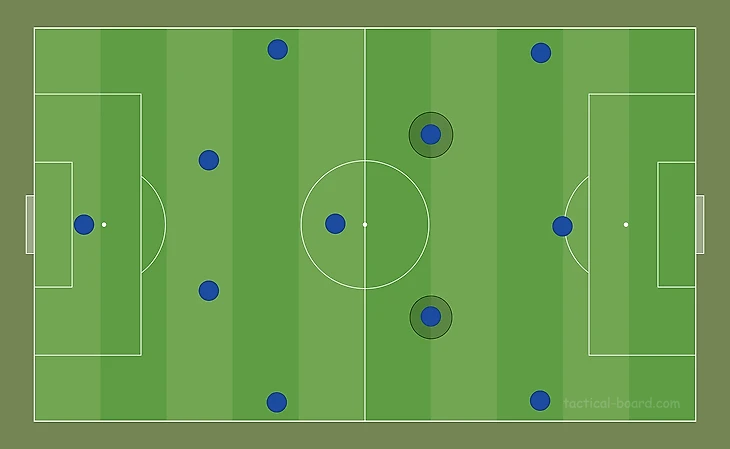 Получается, что в системе «Барселоны» игроки претендовали бы на одну позицию. Здесь преимуществом обладает португалец, так как для него игра в роли «восьмёрки» является основной и не ограничивает его потенциал, как в случае с Френки.
