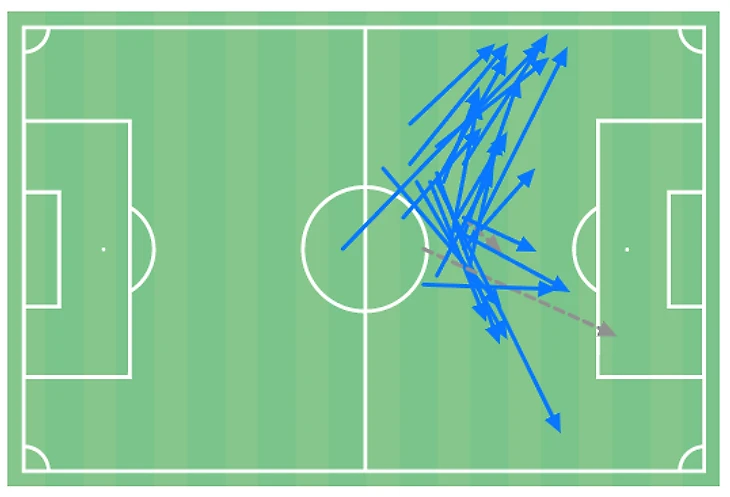 Это подтверждает статистика: Артур эффективен в доставке мяча в финальную треть – в среднем за карьеру делает 10,4 такие передачи за 90 минут, точность которых равна 89%. В штрафную отдает 1,4 передачи за 90 минут, точность – 57%.