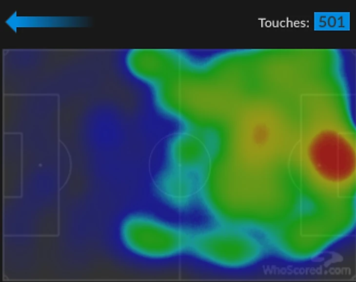 Вот так выглядит тепловая карта команды Аллегри по итогу встречи: