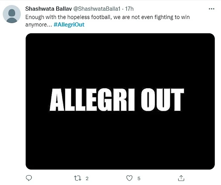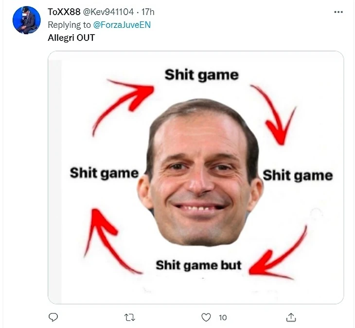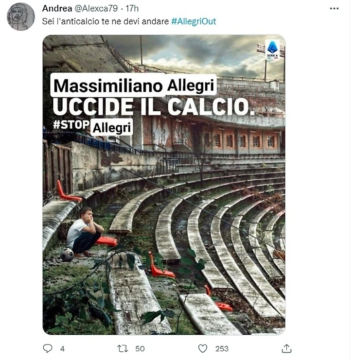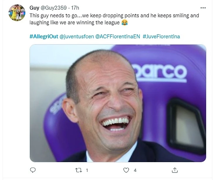 Болельщики «Ювентуса» недовольны работой Макса Аллегри после неудачного матча с «Фиорентиной». Вчера туринский клуб был неубедителен и сумел заработать только ничью. В этой связи в Twitter снова активен хэштэг #AllegriOut.