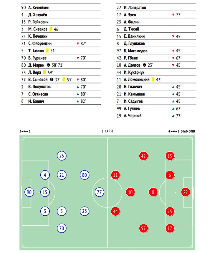 Матч для команды Владимира Федотова складывался непросто. Первый тайм проходил в динамичном темпе, но не подарил обилия ярких моментов. Со стороны ЦСКА вспоминается только удар Чалова в перекладину ворот Ломаева после розыгрыша штрафного. Самарцы, в свою очередь, пару раз проверили работоспособность Акинфеева – с ней оказалось всё в порядке.