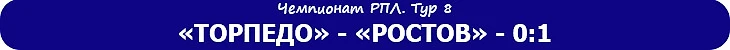 🕮 Факты: ◉ «Торпедо» провело 500-й матч в чемпионатах России. Черно-белые одержали в них 188 побед при 143 ничьих и 169 поражениях (мячи 631–616). Москвичи стали девятой командой, добравшейся до полутысячной отметки после «Спартака» (931), ЦСКА (931), «Локомотива» (931), «Динамо» (900), «Ростова» (870), «Крыльев Советов» (844), «Зенита» (840) и «Рубина» (584). ◉ «Ростов» забивает «Торпедо» на выезде 12 матчей РПЛ подряд. В последний раз автозаводцам удалось сыграть дома с «Ростовом» в обороне на ноль 30 марта 1996 года (ничья 0:0). ◉ Ростовчане прошли без поражений восемь стартовых туров. Это удалось им впервые за всю историю выступлений в чемпионате России. ◉ «Торпедо» пропускало во всех восьми матчах этого сезона. ◉ Ростовчанин Николай Комличенко заработал уже третий пенальти в этом сезоне РПЛ - лучший результат в лиге.