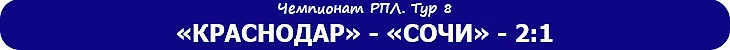 «Краснодар» (Краснодар) – «Сочи» (Сочи) – 2:1 (0:0) 03.09.2022 (суббота). Начало – 18:30. Краснодар. Стадион «Краснодар». 27 097 зрителей. Голы: 1:0 Олусегун (49), 2:0 Сперцян (52), 2:1 Мелкадзе (65).