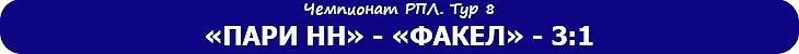 «Пари НН» Нижний Новгород – «Факел» Воронеж – 3:1 (0:1) 03.09.2022 (суббота). Начало – 15:00. Нижний Новгород Стадион «Нижний Новгород». 3950 зрителей. Голы: 0:1 Максимов (5), 1:1 Калинский (66 с пенальти), 2:1 Калинский (73 с пенальти), 3:1 Милсон (90+7).