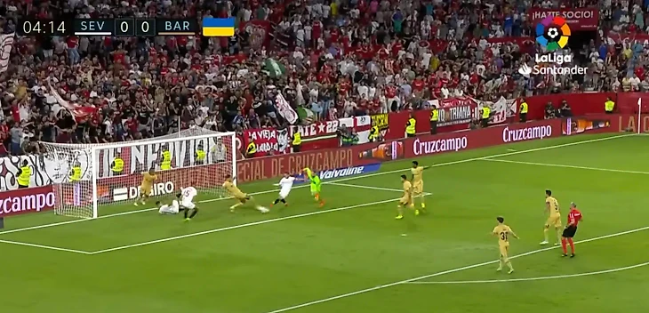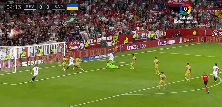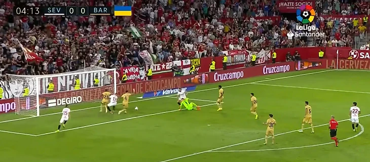Марк-Андре тер Стеген провел отличный матч против «Севильи». Немецкий голкипер совершил потрясающий сейв на 4-й минуте, когда Иван Ракитич наносил удар с близкого расстояния.