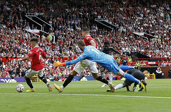 После перерыва «МЮ» отдал инициативу «Арсеналу» и сел в низкий блок. Несмотря на это, у Эдегора и Сака были моменты. На 58-й минуте Эрик тен Хаг провел первую замену – вместо Антони вышел Криштиану Роналду. И через 2 минуты «канониры» сравняли – Сака переправил отскочивший к нему мяч прямо в угол.